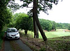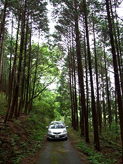 山へと入っていくにつれて、昼でもかなり薄暗くなったり、生い茂った樹木が車のボディを引っかいたりしますので、ご注意ください。